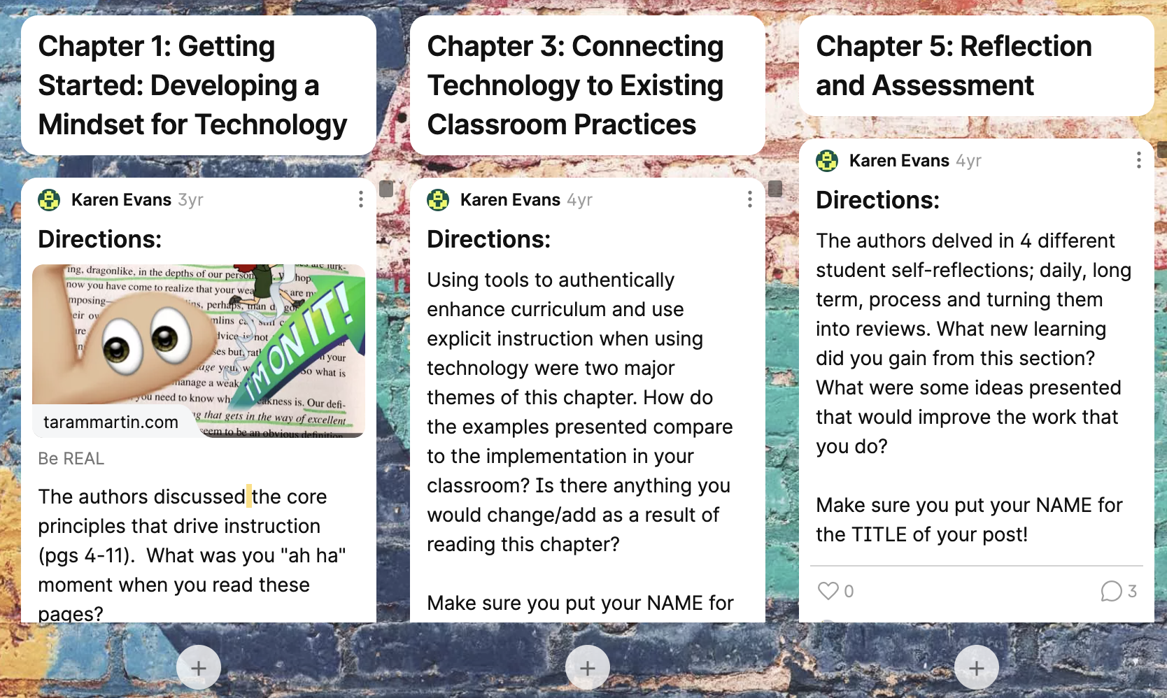 Check out this example of a Padlet.com book study for Amplify: Digital Teaching and Learning in the K-6 Classroom that has been broken into chapters.