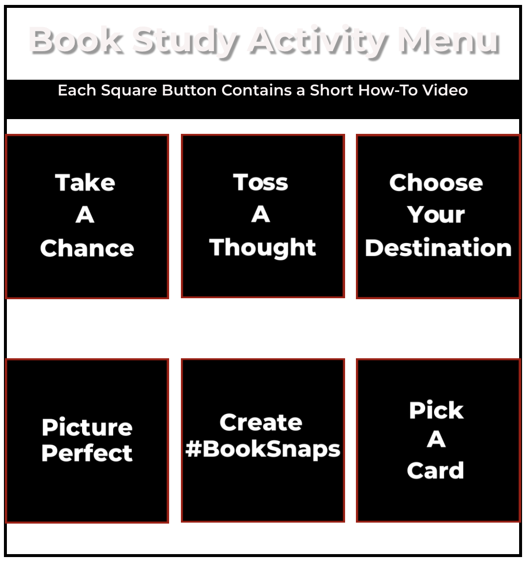 Looking for ways to spice up your book study? Hop over to Dave Burgess Consulting, Inc.'s Book Study page and check out their "how-to" video library jam-packed with fun activities to engage participants and heighten learning!